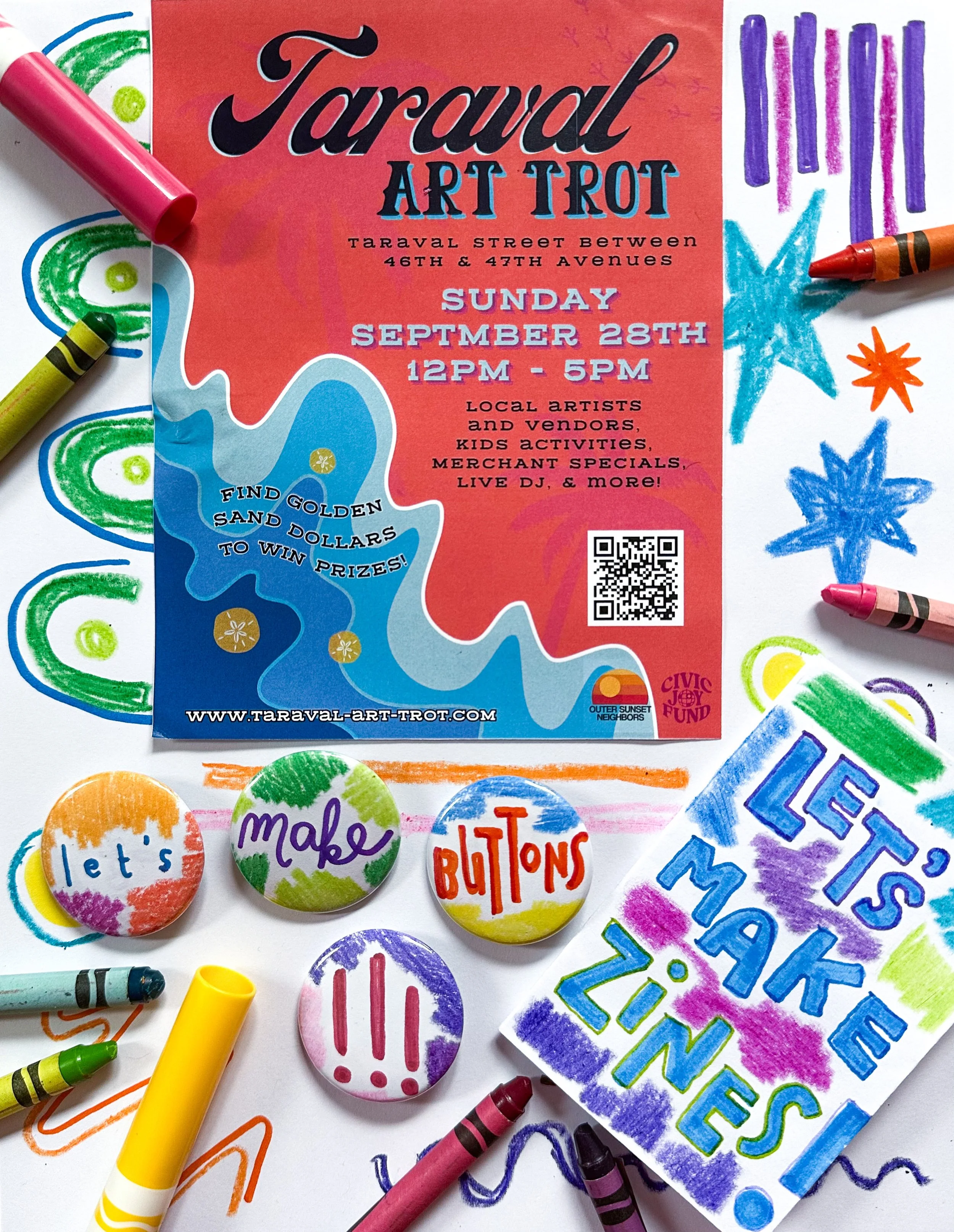 this sunday 9/28, a big creative community hang on a small-but-mighty block in the outer sunset — it’s the taraval art trot!