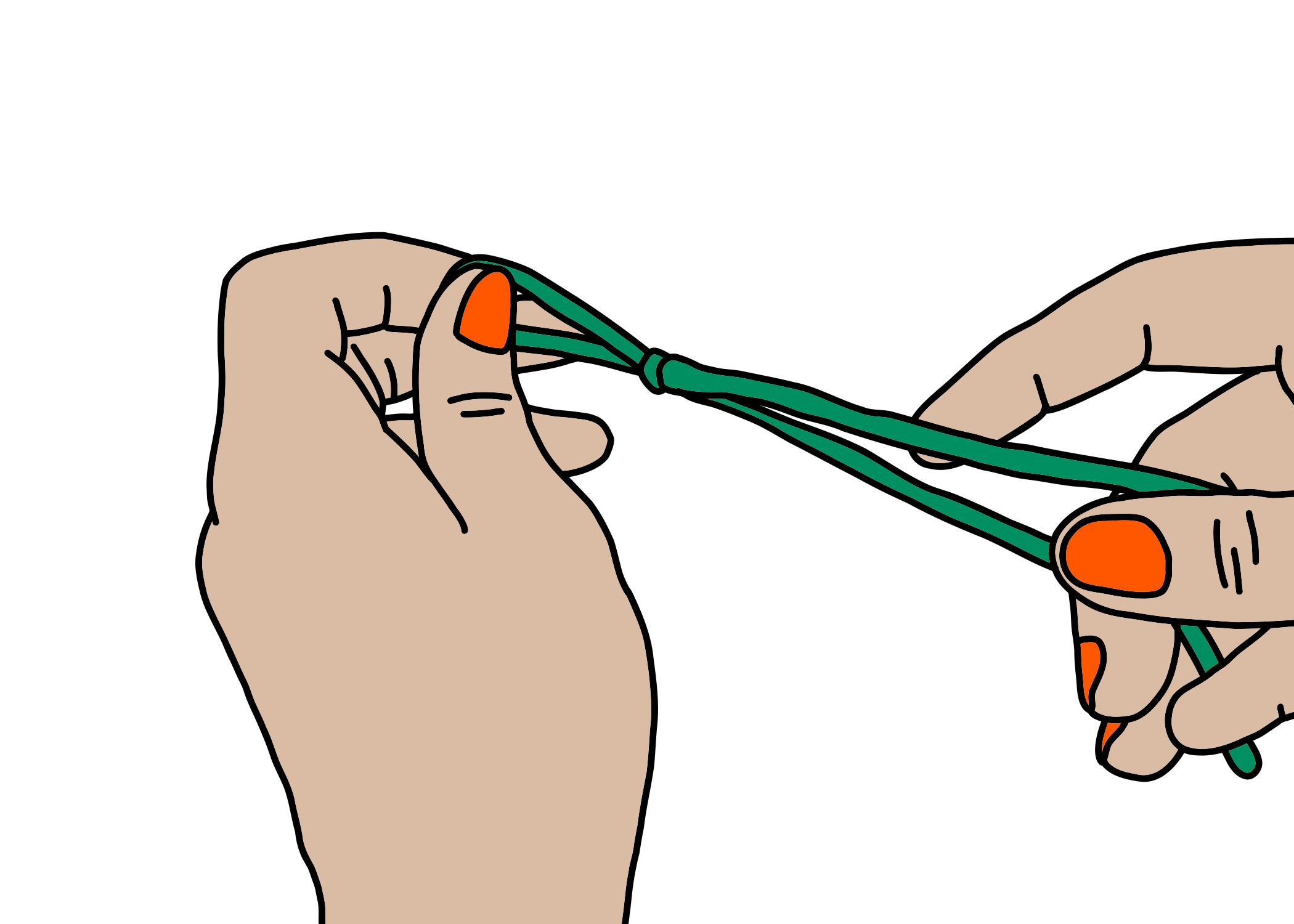 Run the long end of the yarn (the working yarn) loosely through your middle and pointer fingers.